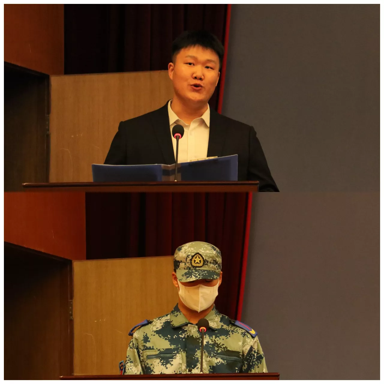 2019级音乐表演专业刘志方同学作为在校生代表发言。他勉励学弟学妹们珍惜大学美好时光,精于艺,践于行,胸怀大志,谨记校训,刻苦学习,早日成长为可堪大任的专业人才;音乐表演专业新生王淏同学代表2021级全体新同学发言,他表达了不忘初心勇担重任的决心,立志要做有志气、有骨气、有底气的中北青年,把青春奋斗融入伟大事业,为实现中华民族伟大复兴的中国梦贡献力量。