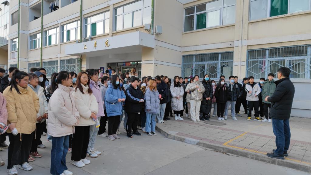于2021年11月30日在文澜苑公寓开展消防应急疏散演练,学院党委副书记田维飞,保卫处安全教育科科长向远峰,院综合科科长郭云、学生科长夏志丽以及全体辅导员参加了本次活动。整个活动按照预定方案进行了消防安全疏散演练,活动包括:“模拟火情”、学生逃离、讲解逃生要领、灭火器的操作方法和注意事项等。
