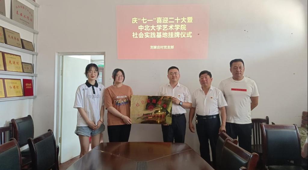 社会实践基地正式授牌成立。会后,吴有磊带领两名学生党员代表参观、考察刘家庄村文旅发展情况,并邀请其设计民宿LOGO、特色农产品包装、文创产品等,并撰写刘家庄村文旅营销方案。