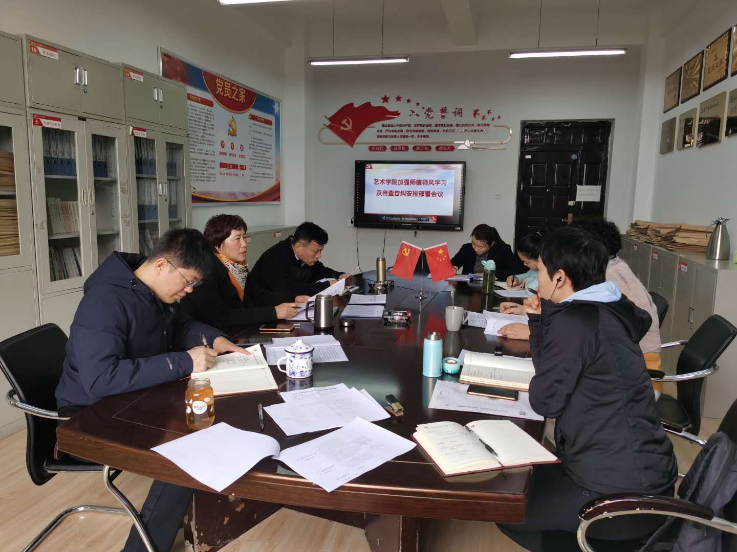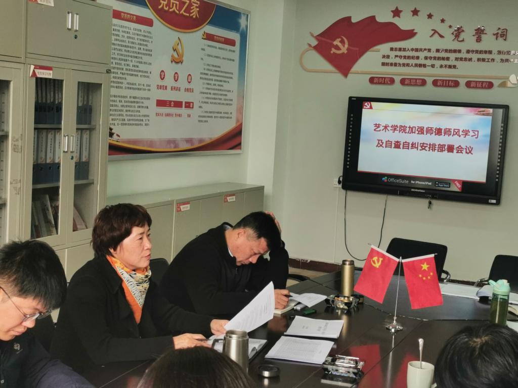 10月27日召开师德师风学习及自查自纠安排部署会议,院领导、各系主任、各支部书记和各科室负责人参加了本次会议,会议由学院党委书记夏瑞丽主持。
