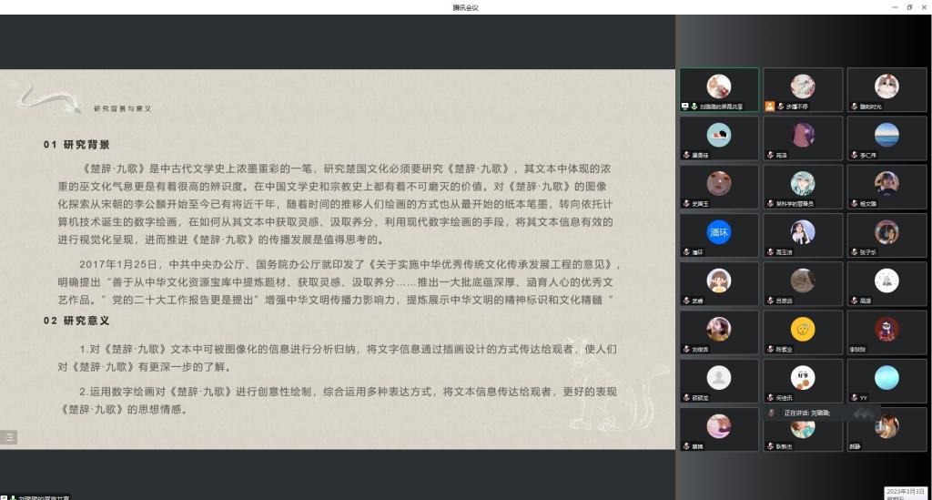 为了保证艺术硕士的培养质量,提升研究生毕业论文的研究水准,推进毕业创作的整体进程,202333日下午14002020级艺术硕士(艺术设计领域)进行了毕业论文预答辩。参与答辩的学生19名,全体硕导出席进行答辩评审与指导。