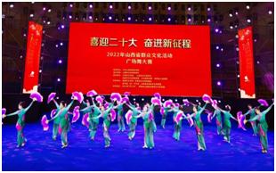 为了不断满足人民群众对文化生活的新需求、新期待,不断提升人民群众的获得感、幸福感,用璀璨文化之光照亮高质量发展之路,以优异成绩迎接党的二十大胜利召开,7月23日,“喜迎二十大,奋进新征程”2022年山西省群众文化活动广场舞大赛在运城市闻喜县举行。该活动为文化和旅游部全国地方联动活动,由山西省文化和旅游厅主办,山西省文化馆、山西省文化馆协会、运城文化和旅游局、中共闻喜县委、闻喜县人民政府联合承办。