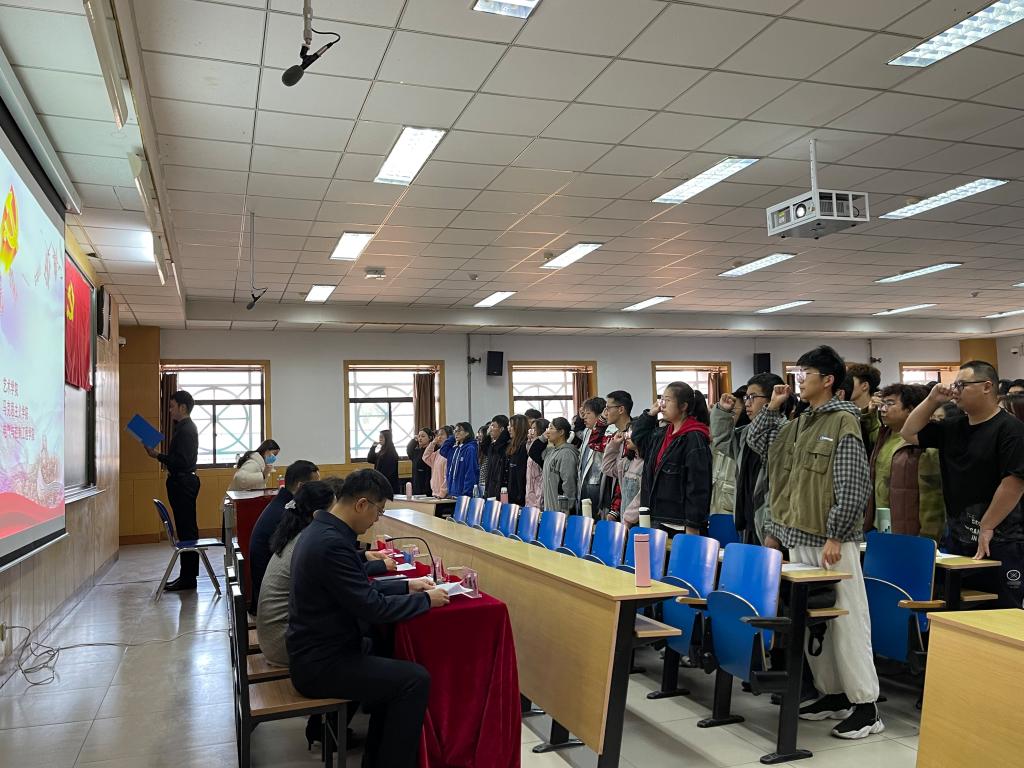 刘昶同学带领全体院党课学员进行宣誓,马克思主义学院教学副院长郭玲霞、电气与控制工程学院党委书记陈晔分别介绍了院党课的培训安排和培训考核标准及纪律要求,做爱视频