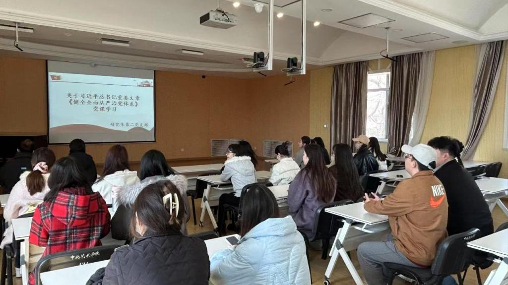 研究生第二党支部精心组织全体党员开展了一场深刻且具有重要意义的党课学习活动,学习内容聚焦于习近平总书记的重要文章《健全全面从严治党体系》。此次党课学习旨在强化支部党员的纪律意识、党性修养,为艺术领域的学术研究与创作实践筑牢坚实的思想根基。