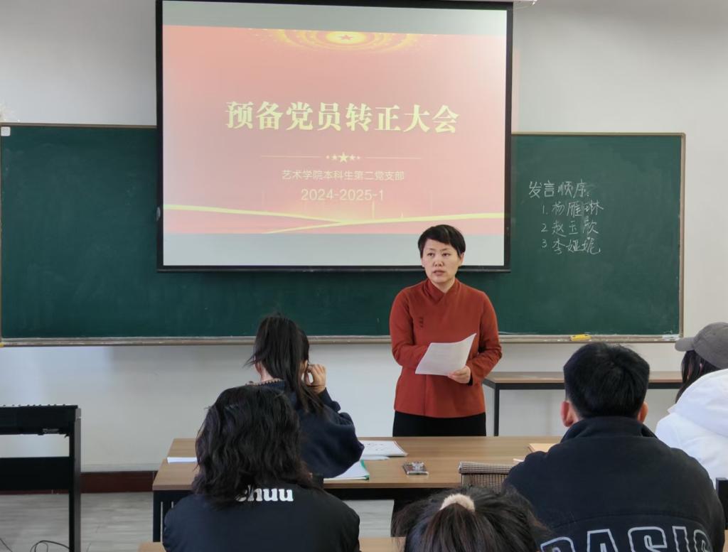会议第二项,支部大会逐个讨论杨雁琳、赵玉欣、李娅妮3名同志预备党员按期转正问题。通过宣读转正申请、入党介绍人介绍有关情况、支委会汇报审查情况、与会党员发表意见、正式党员无记名投票表决。同意杨雁琳、赵玉欣、李娅妮3名同志2024年12月29日按期转为中共正式党员的表决结果均为6票赞成,0票反对,0票弃权。大会认为以上3名同志已基本具备正式党员条件,同意3人按期转为中共正式党员。
