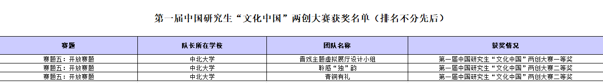 中国研究生“文化中国”两创大赛是中国研究生创新实践系列大赛主题赛事之一,是系列大赛中首个文科主题的创新实践公益性赛事。大赛秉承“传承、发展、创造、创新”的办赛理念,坚持“赓续中华文脉、坚定文化自信”的办赛宗旨,鼓励研究生投身到中华优秀传统文化“两创”的创新实践中,引导广大研究生深学细悟习近平文化思想,强化传承弘扬中华优秀传统文化的使命担当,激荡起文化“两创”的创新热潮,为国家、社会发现、培养、输送文化领域“两创”型人才。