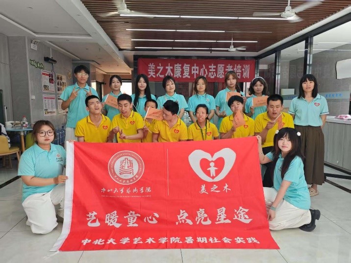 “艺暖童心”暑期社会实践团队在王家乐老师带领下,深入太原美之木特殊儿童康复中心开展为期8天的公益实践活动。本次暑期实践以艺术为纽带,引导我们要深入了解特殊教育,体验特殊教育工作的专业特点,提升服务意识与社会责任感。通过艺术这一独特媒介,实践队员们不仅在陪伴中观察和理解儿童的成长状态,更在实践中体会教育的社会价值与意义。